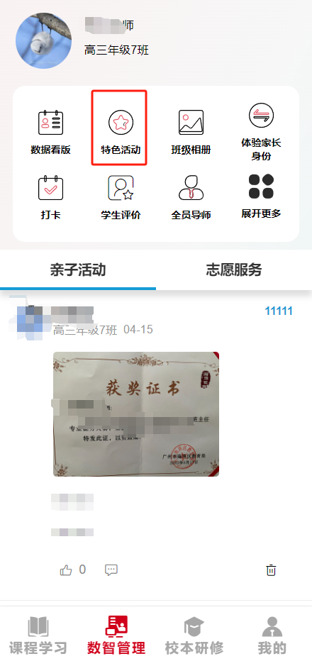 特色活动可在学校创建学校特色活动,征文活动等一系列家校活动时提供帮助。可以在手机上方便快捷的举行活动,收集文件,包括评比等功能,为校家社合作提供有力的帮助。