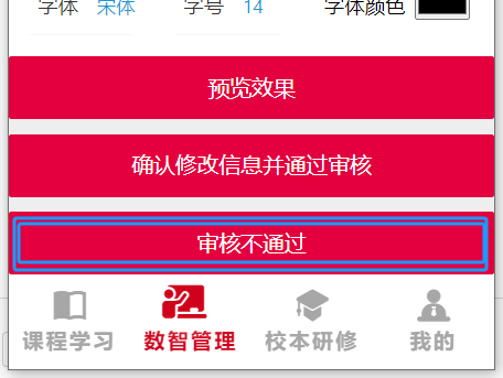 在审核弹窗中点击“审核不通过”按钮,填写原因(选填)即可发回学生重新修改