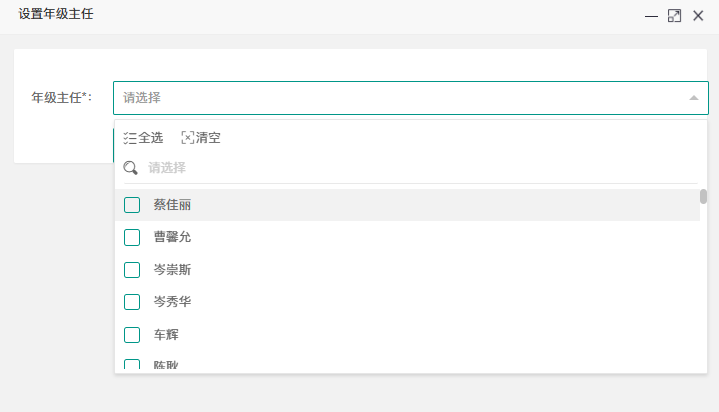 找到需要设置的年级,点击年级管理员中间空白的位置