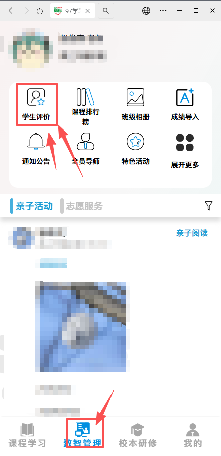 登录校本研修公众号“我是教师”,找到“数值管理”栏目,进入“学生评价”模块