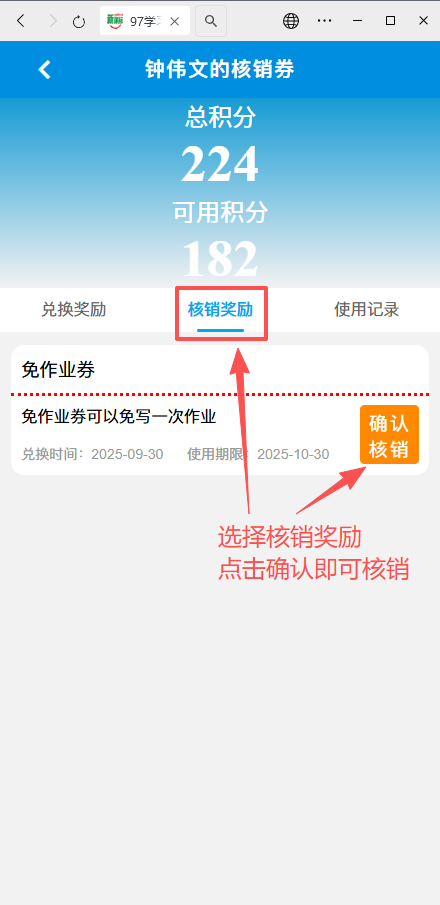 班主任可在此处兑换对应的奖励,也可以核销家长兑换的奖励