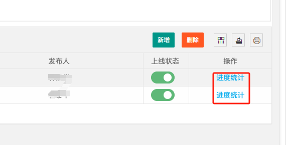 列表右侧点击课程的进度统计可查看该课程的数据统计: